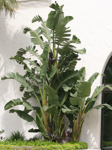 Before leaving, Giant White and Blue Bird of Paradise plants are inspected, watered, and pruned. Larger plants, generally those that ship in 8″ pots or with totems, will be topped to 36″ or 48″ overall, depending on the variety, if necessary to facilitate shipping. Your new plants’ pot is then bagged to ensure that the soil stays in the pot and not loose in the box. Plants are tissue or kraft paper wrapped and secured in place with natural biodegradable peanuts. Buy your Giant White and Blue online now while they are in stock.