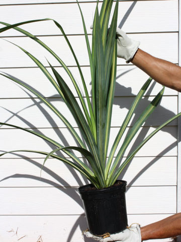 When you receive your new Pandanus, there is no need to worry about planting right away. Your new plant can be stored for a while by simply placing it in a bucket with about a half inch of water in the bottom and moving it to a shady location. You can then add some mulch to the bucket to keep your plant standing upright. The mulch will also supply nutrients while in storage. This will give you plenty of time to select the ideal location for your new Pandanus.