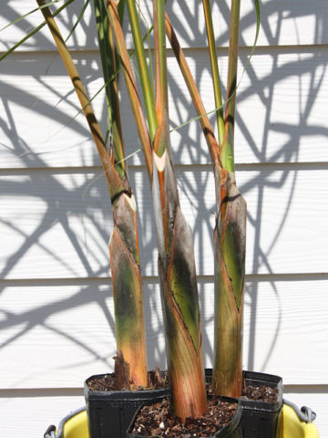 The growth rate of Spindle Palms will vary greatly depending on soil type, sunlight, temperature and other factors. A few leaves are often trimmed prior to shipping to reduce transpiration and travel stress.