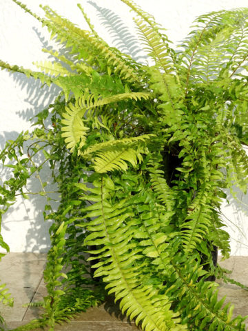 The growth rate and leaf color of Variegated Boston Tiger Fern will vary greatly depending on soil type, sunlight, temperature and other factors. A few leaves are often trimmed prior to shipping to reduce transpiration and travel stress.