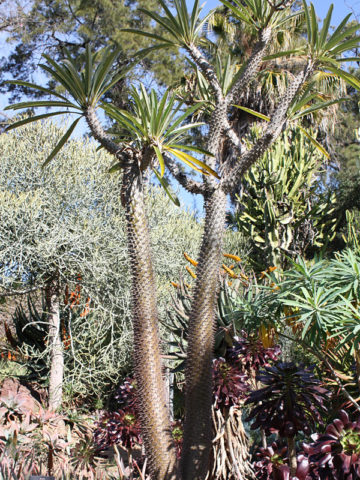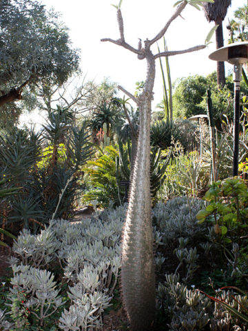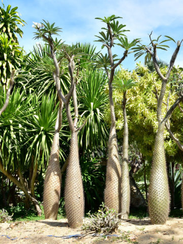 The most beautiful known Pachypodium. Also known as the Madagascar Palm Pachypodium do very well indoors. They all have very swollen irregularly shaped bases with thick and incredibly sharp and thorny spines. The leaves of these plants are simple and narrow. This wicked plant produces amazingly delicate and fragrant flowers in the summer.