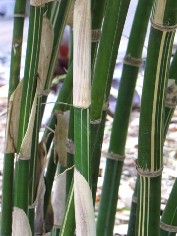 (XL Specimen, 8” Pot) STRIPES! Suberecta grows to 7 feet tall and has culms 1 / 2 inch in diameter. Canes and leaves are extremely green with multiple cream stripes. VERY RARE! Bambusa is typically one of the more cold hardy geniuses a thick clumping bamboo with multiple branches at the nodes. Easily contained and given plenty of sunlight Bambusa will flourish in an atrium or in the tropical garden.